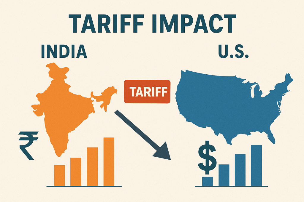 Recently in 2025, the US administration increased tariffs on a range of Indian goods by an additional 25%, raising the total tariff level to 50% for most of the products. This move followed an initial 25% tariff imposed on 1st of August 2025, and they targets India’s continued imports of Russian oil. The tariffs apply to about 55% of India’s merchandise exports to the US, which is India’s largest single-country export market, accounting for roughly $87 billion – This contributes about 2.5% of India’s GDP. As US is the biggest export market for Indian Market, it become important for everyone to understand the impact of These Tariffs on India, its GDP and People like US. We can’t deny the fact that if this tariff will continue it will impact the Indian exporters and people directly and indirectly. But as we all know that Indian market have a strong domestic demand and consumption which can help India and its market to sustain the impact.[1][2][3]